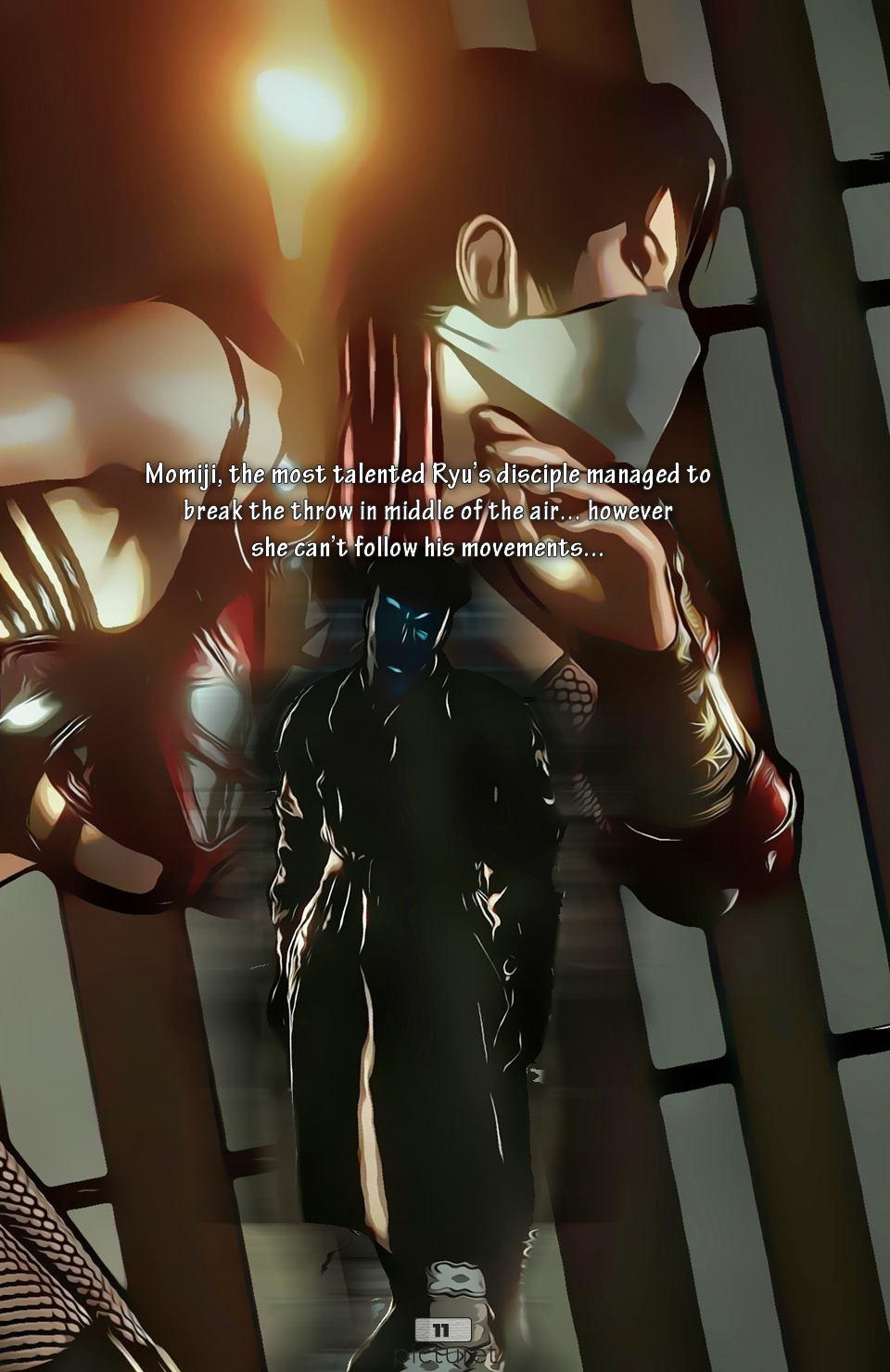Unknown creatures landed near the village killing people and displacing them from their home, Momiji the Shrine Maiden is collecting information about the appearances to fight them. She’s following a subjet who’s been involved with these events. What will she discover?.
